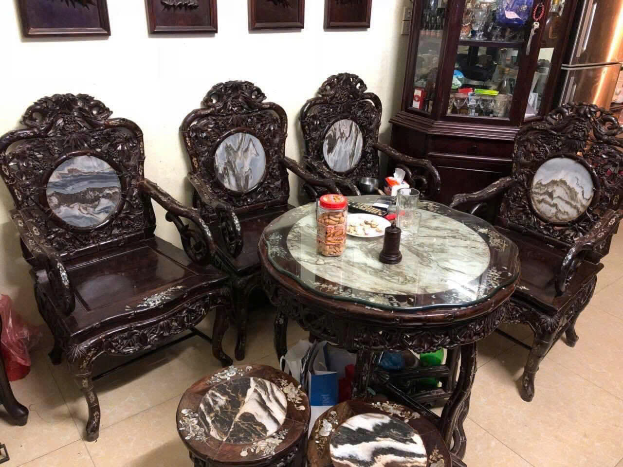 Tên sản phẩm: Bộ bàn ghế phòng khách gỗ trắc mặt đá cũ